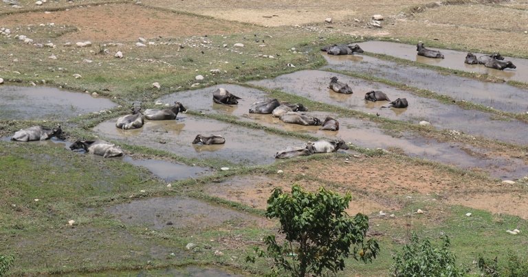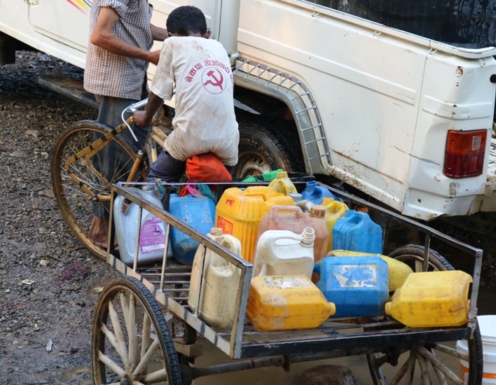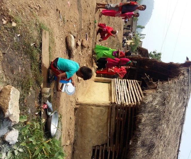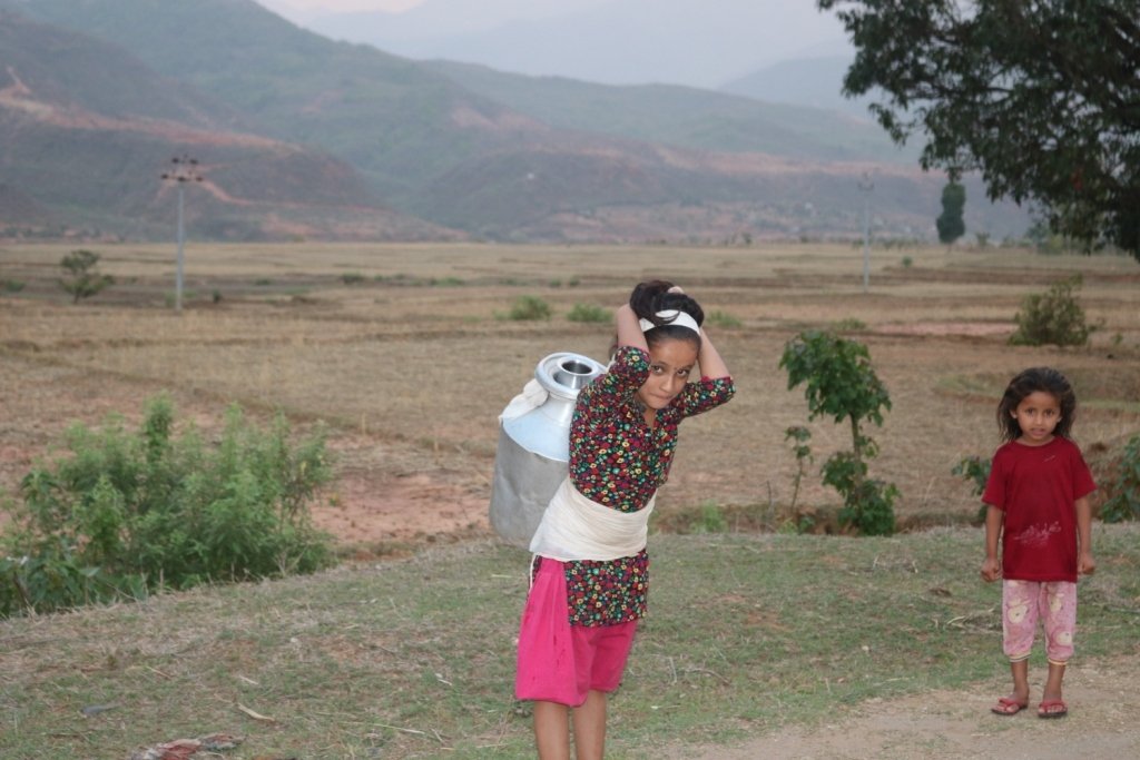 बुलबुले तालमा पानी लिन जाँदै एक बालक (तस्विर : सेरोफेरो)
