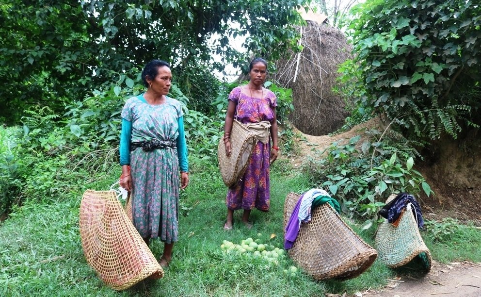 सल्यानको कुपिण्डे दह नजिकै ग्राहकको प्रतिक्षामा स्थानीय सुन्तला व्यापारी । (तस्बिर : सेरोफेरो)
