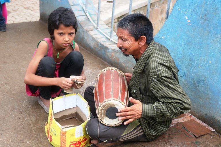 बुवाले बुलबुले पार्कमा गीत गाउँदा प्राप्त भएका रुपैँया गन्दै सुर्खेत बाङ्गेशिमलकि दुर्गा सुनार । उनि कोपिला भ्यालिमा कक्षा ४ मा पढ्छिन् । (तस्बिर : सेरोफेरो)