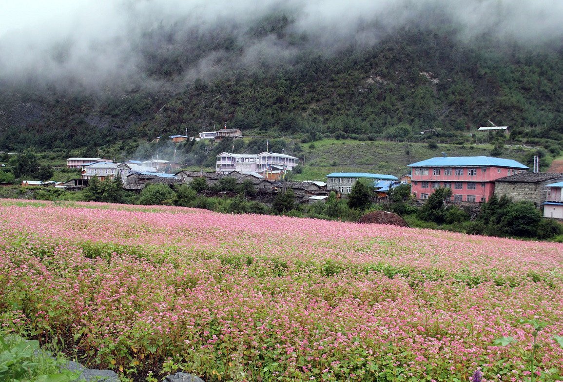 मुगुको छायाँनाथ रारा नगरपालिका २ सेरा ज्युलामा जौ काटेर थाकेपछि आराम गर्दै एक युवती । तस्बिर: जीवन सेजुवाल